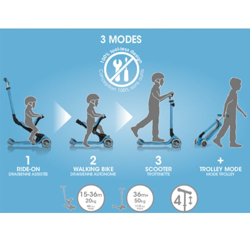 What makes the Globber Go Up Comfort Scooter so different from the others? It can transform into a ride on, walking bike and scooter - the ultimate 3-in-1!