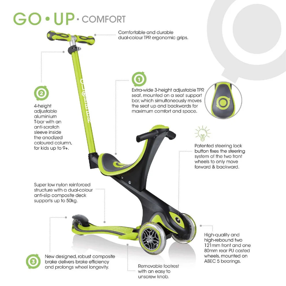 What makes the Globber Go Up Comfort Scooter so different from the others? It can transform into a ride on, walking bike and scooter - the ultimate 3-in-1!