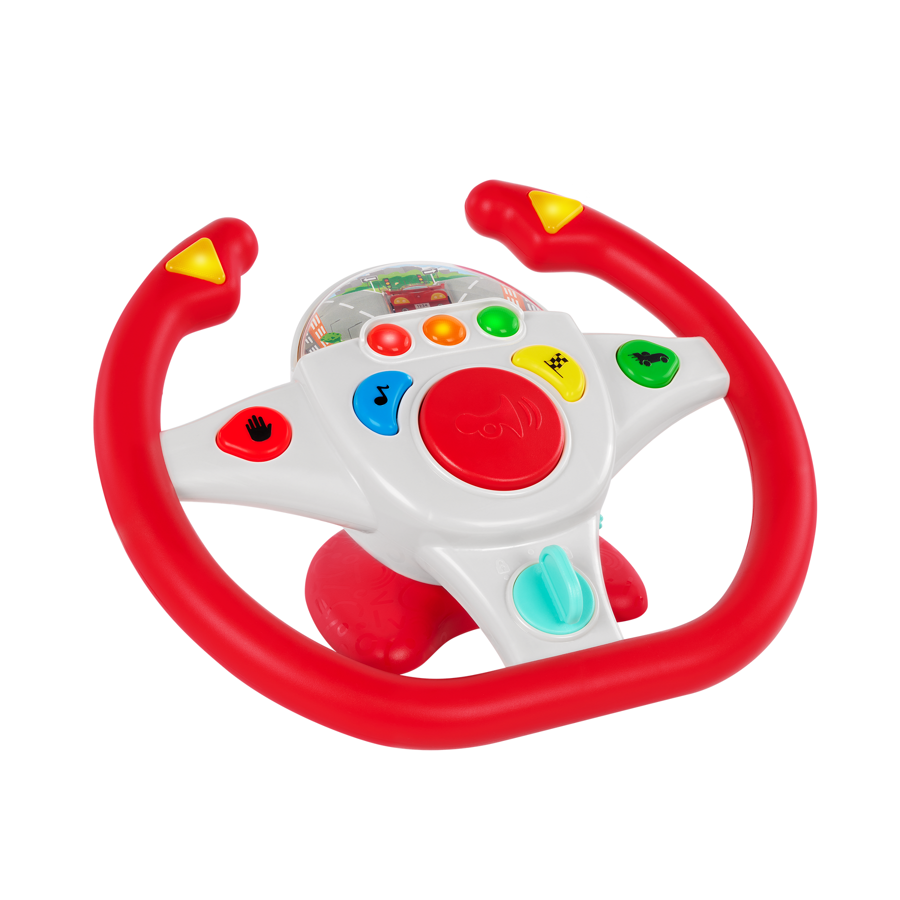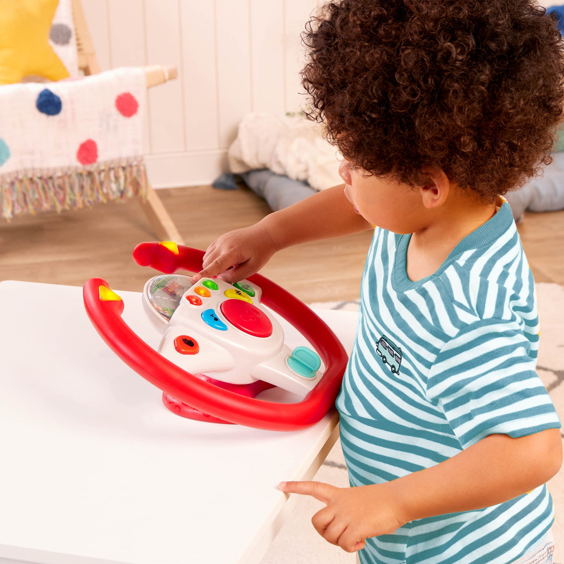 • Toy Steering Wheel: Get into the driver’s seat with an interactive steering wheel featuring lights and sounds!