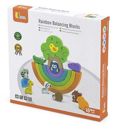 The rainbow balancing game block set features 5 different rainbow blocks as well as 11 kinds of animals and tree blocks. The colourful, arched building blocks offer a different twist to conventional building blocks.Not only a balancing game, but can also be used as a nesting and stacking game or for pretend play. The rainbow balancing blocks is great for creativity, imagination, pretend play and colour, size and comparison recognition.Viga Toys uses non-toxic paints and inks and is safe for children