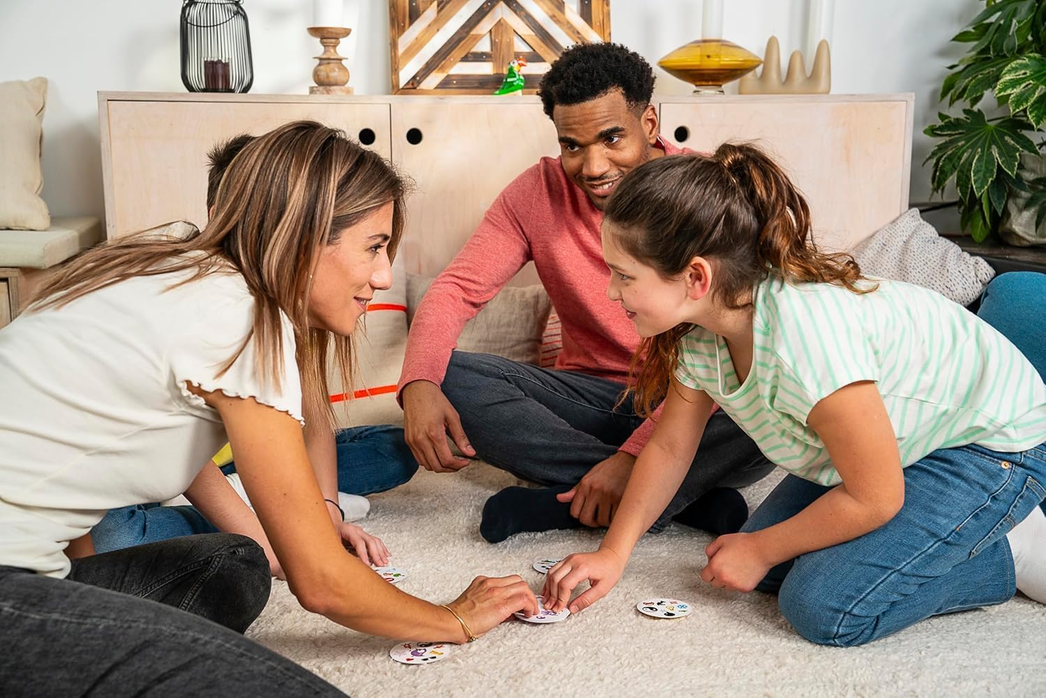 Spot It! is a game of sharp eyes and lightning reflexes! There are only two matching symbols between any two cards.