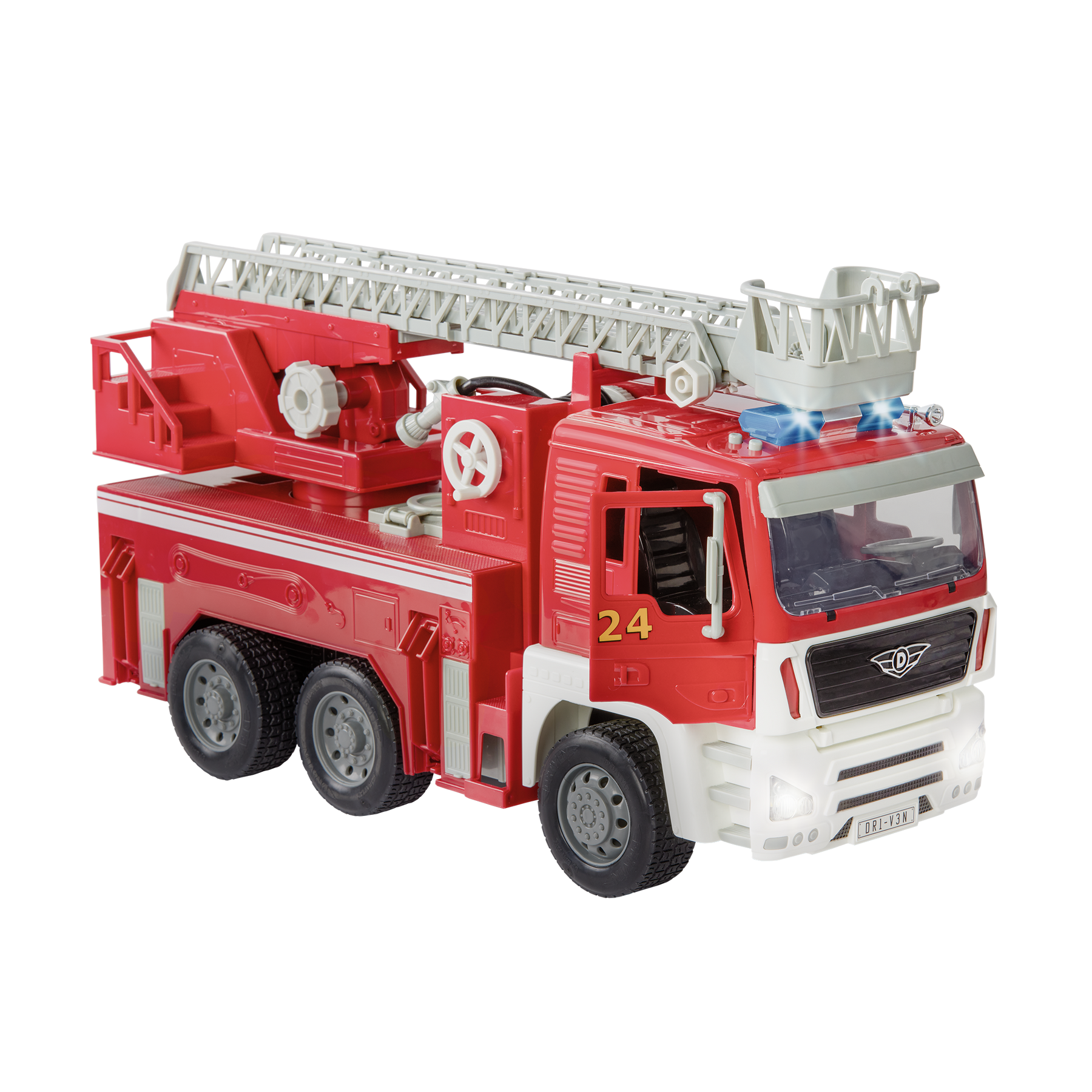 With working lights and sounds, the amazing Standard Fire Truck from DRIVEN by Battat goes above and beyond the call of duty. Open up its doors to check out the realistic interior! Then, flash its lights, honk its horn, and rev its engine to let everyone know you’re on the way. Finally, pour water into the toy truck so that your little one can hose down a (pretend) fire. This is the perfect toy truck for kids to pretend like they are fighting fires themselves. What pretend play adventures will your kiddo think up? The only limit is their imagination! Remember, stay DRIVEN because the crew depends on you.