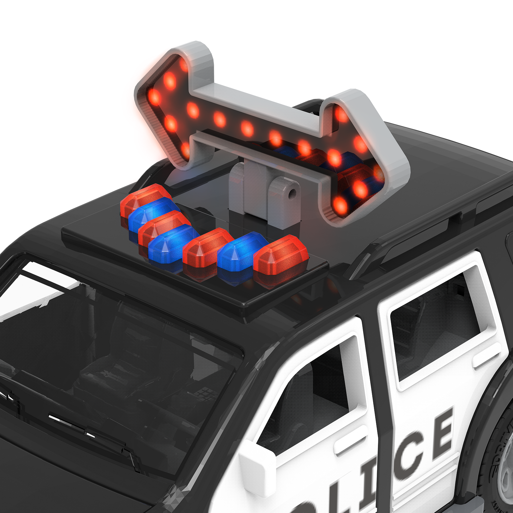 Direct traffic with the Micro Police SUV from DRIVEN by Battat! This toy car has lots of cool features to make it look just like the real thing. You can open the car doors to take a peek at the detailed interior, and pop the hood to check the engine. There is even an arrow traffic sign on the roof that you can move up and down! Need to get somewhere in a hurry? Flash the blue and red lights, activate the siren sound, and hit the road! Stay DRIVEN, because the crew depends on you!