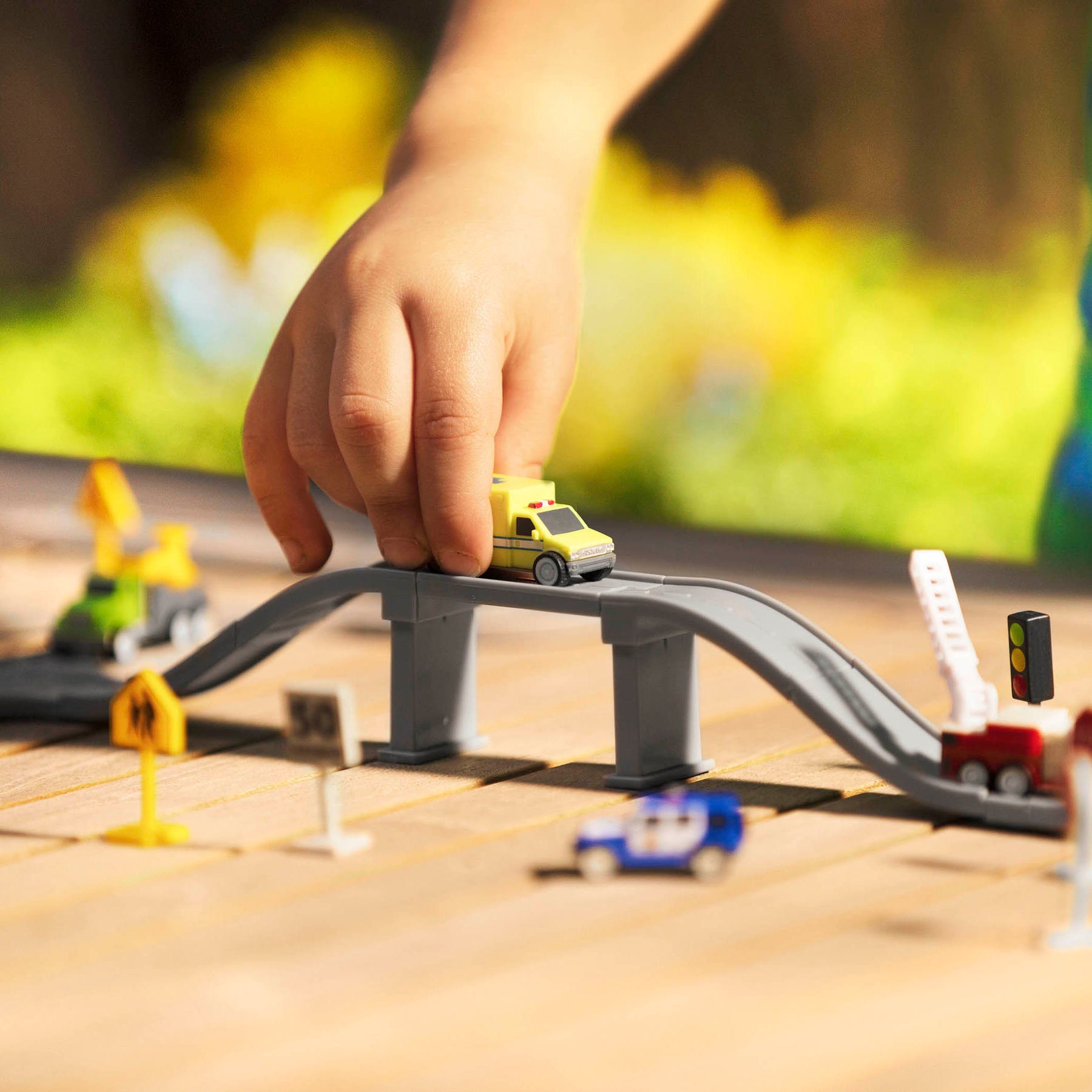 • Toy Truck Playset: Build your own city with this Pocket Series playset!