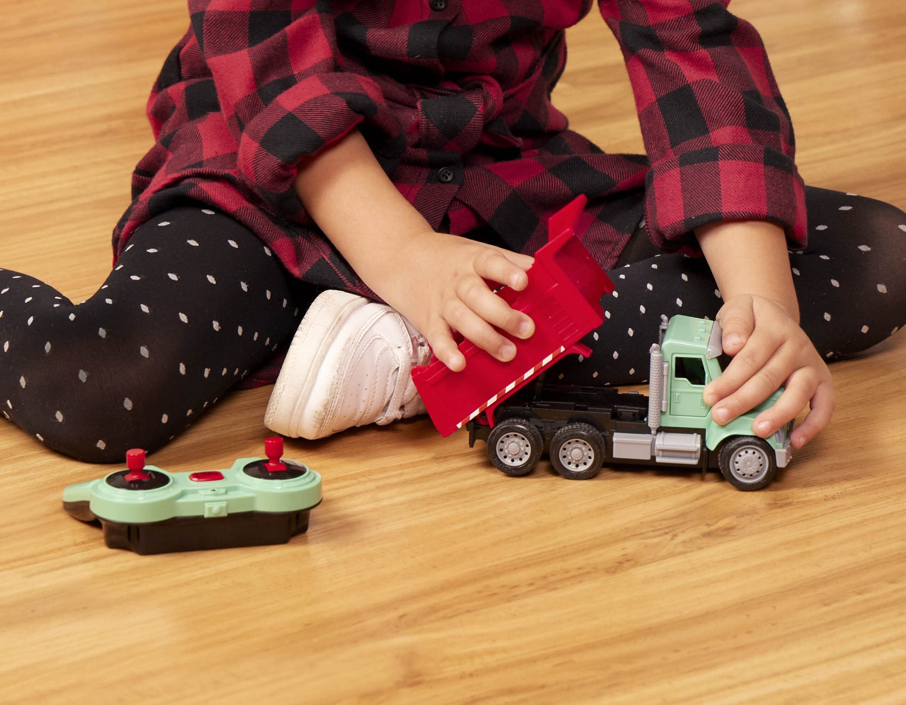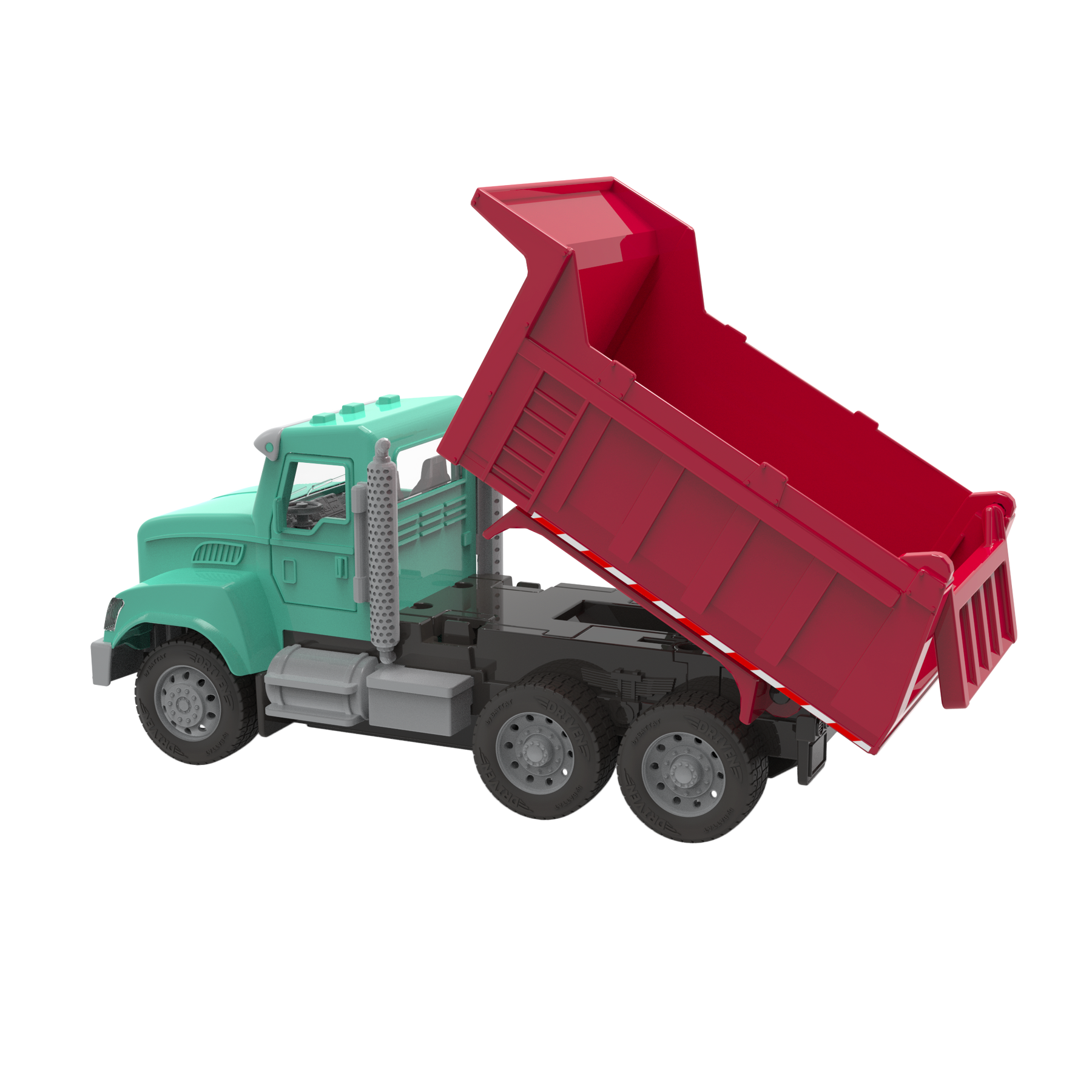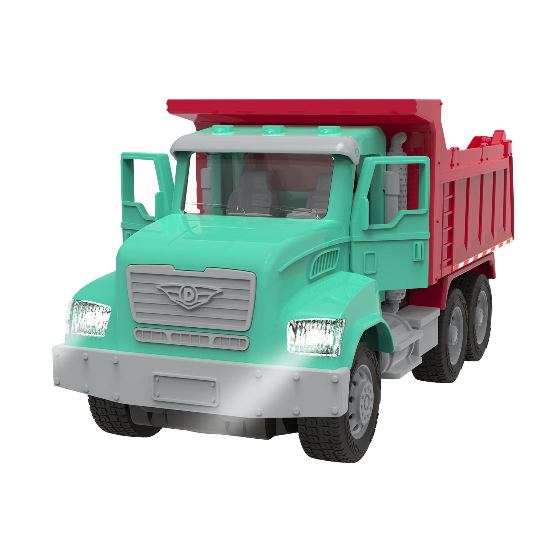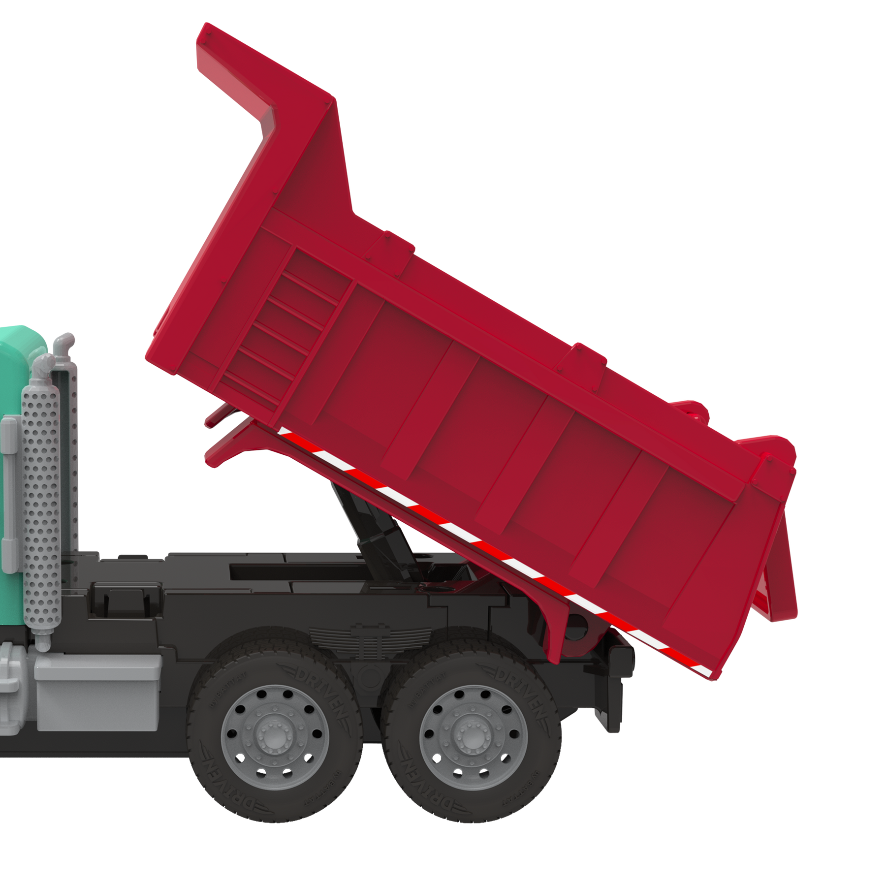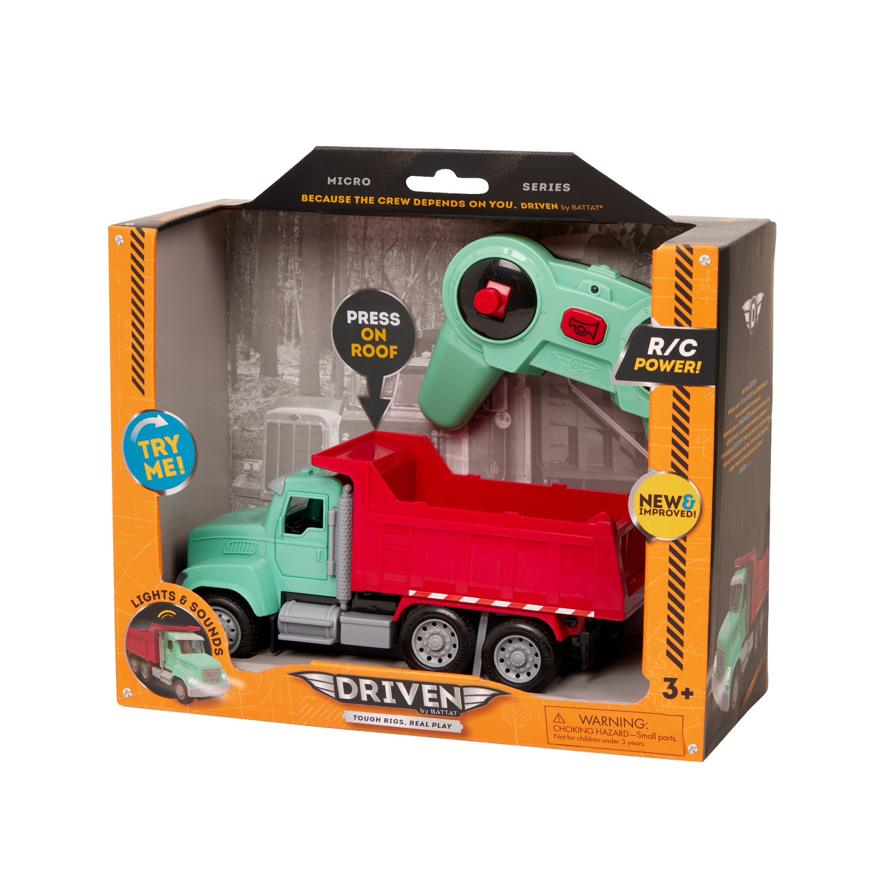 Haul in some fun with the R/C Dump Truck from DRIVEN by Battat. This hardworking construction vehicle comes with a powerful remote control that works from up to 65 feet away! Move forward, backward, and side to side – wherever you need to go. Whenever building materials are needed, this colorful truck is up to the task. Press on the roof for realistic lights and sounds, open the doors to check out the detailed interior, then roll up to the site. To unload materials, just tilt the container and open the hatch. This rugged truck can handle any load. Stay DRIVEN, because the crew depends on you.