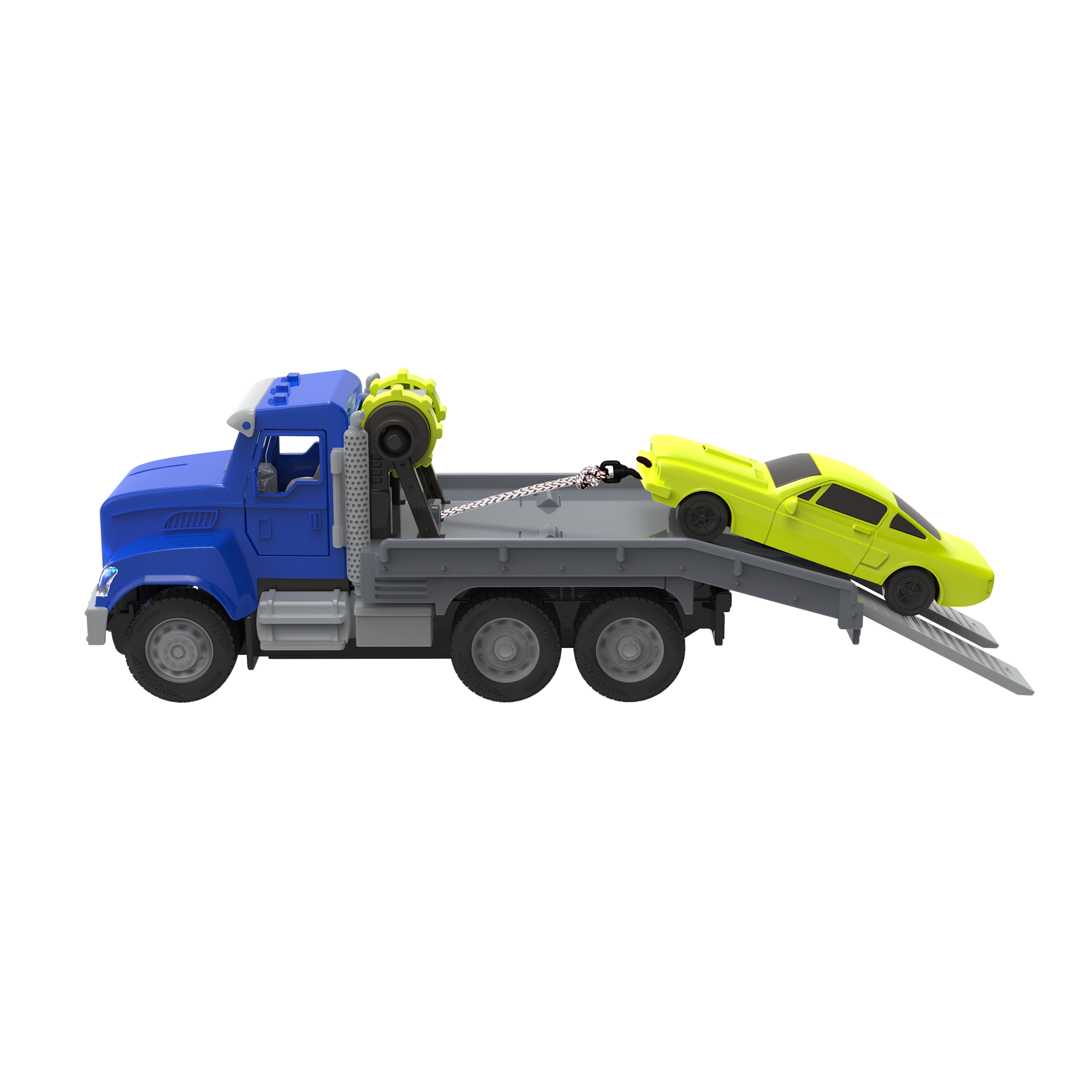 The R/C Micro Tow Truck from DRIVEN by Battat is always ready to help! Truck stuck in the mud? Need to get your race car back on track? No matter what kind of jam you’re in, this trusty truck can handle it! Control the truck from up to 65 feet away with the powerful remote control. When you arrive on the scene, use the heavy-duty hook and pulley system to secure the vehicle and safely load it onto the ramp. Now it’s off to the mechanic – another job well done! This truck is durable enough for all your trickiest tasks! Stay DRIVEN, because the crew depends on you.