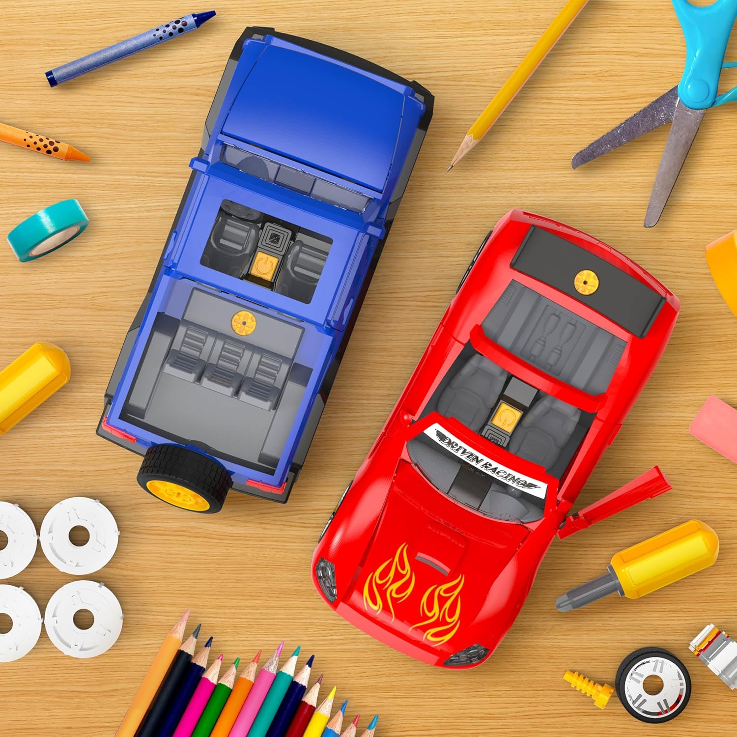 Build your own vehicle with the Take-Apart SUV from DRIVEN by Battat! This cool toy set comes with all the accessories you need to take apart your SUV and bring it all back together. There is a mini screwdriver with screws, a set of spare wheel rims, and even colorful stickers so you can customize your vehicle! This toy SUV also features realistic lights and sounds, so you can let everyone know you’re on the road. Be your own mechanic with the Take-Apart SUV toy set! Stay DRIVEN, because the crew depends on you!