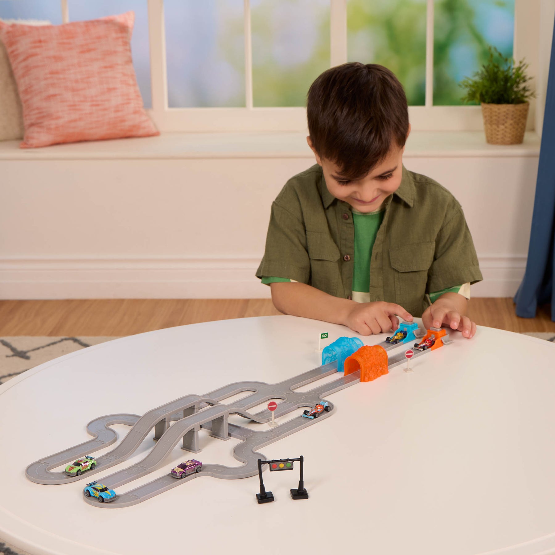 On your marks… get set… race! Get ready to blast off and whiz around the track with the Turbo Launcher playset from DRIVEN by Battat. This versatile and portable playset has everything kids need to race and play. Every set comes with 2 launchers, easy-to-connect tracks (including bridge tracks), traffic cones, street signs, tunnels, and mini race cars. Once set up, load the race cars onto the launchers and press the buttons to see them take off. Follow suggested track layouts or let kids make up their own – it’s up to them! Road accessories and track versatility encourage planning and creativity as children dream up unique courses and develop teamwork skills. All the Pocket Series tracks from DRIVEN are compatible with one another – pair them up with another set for even more fun. Remember: Stay DRIVEN, because the crew depends on you!