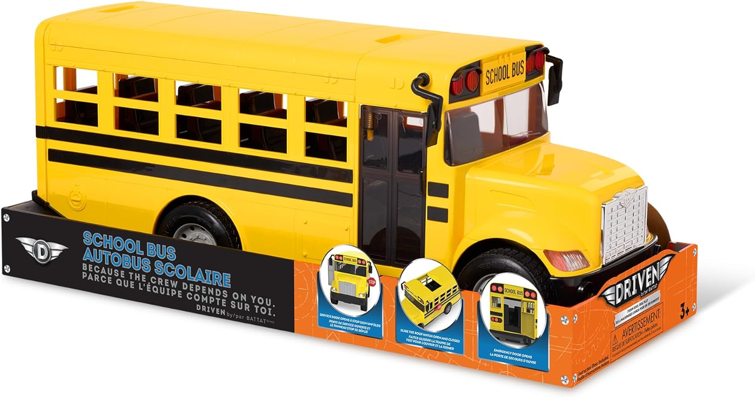 With its bright yellow body, detailed interior, and realistic features, the Driven Standard School Bus brings everyday adventures to life. Whether they’re picking up imaginary students or running a full pretend‑play transport route, this bus delivers hours of creative fun.