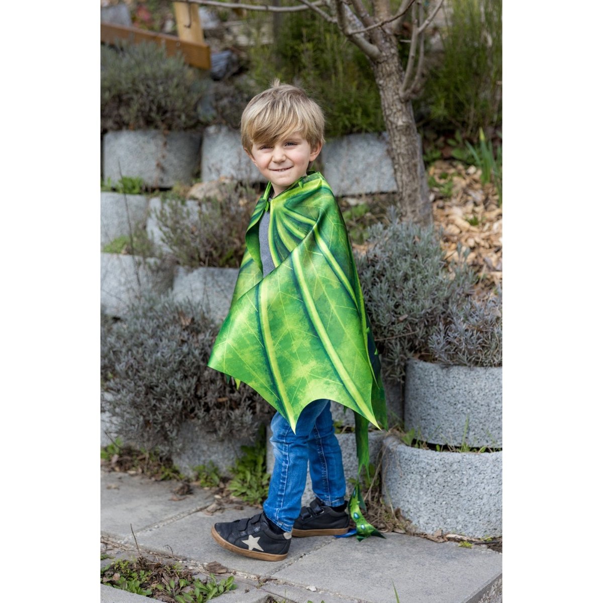 Turn your youngster into a mystical marvel with our Legendary Dragon Soft Wings! This charming green dragon ensemble will whisk your child away, igniting their imagination to breathe fire and take flight through the skies. Meticulously hand-drawn by our skilled in-house graphic designer and engineered for seamless movement, these lightweight wings guarantee that your little one's imagination will soar to boundless new heights!