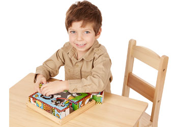 Discover six puzzles in one with the Melissa & Doug Cube Puzzle – Farm! This charming wooden puzzle set features 16 solid cubes, each side revealing a different part of a colourful farm animal. Kids can rotate the cubes within the sturdy wooden tray to complete six delightful animal images, including favourites like a cow, pig, and horse.
