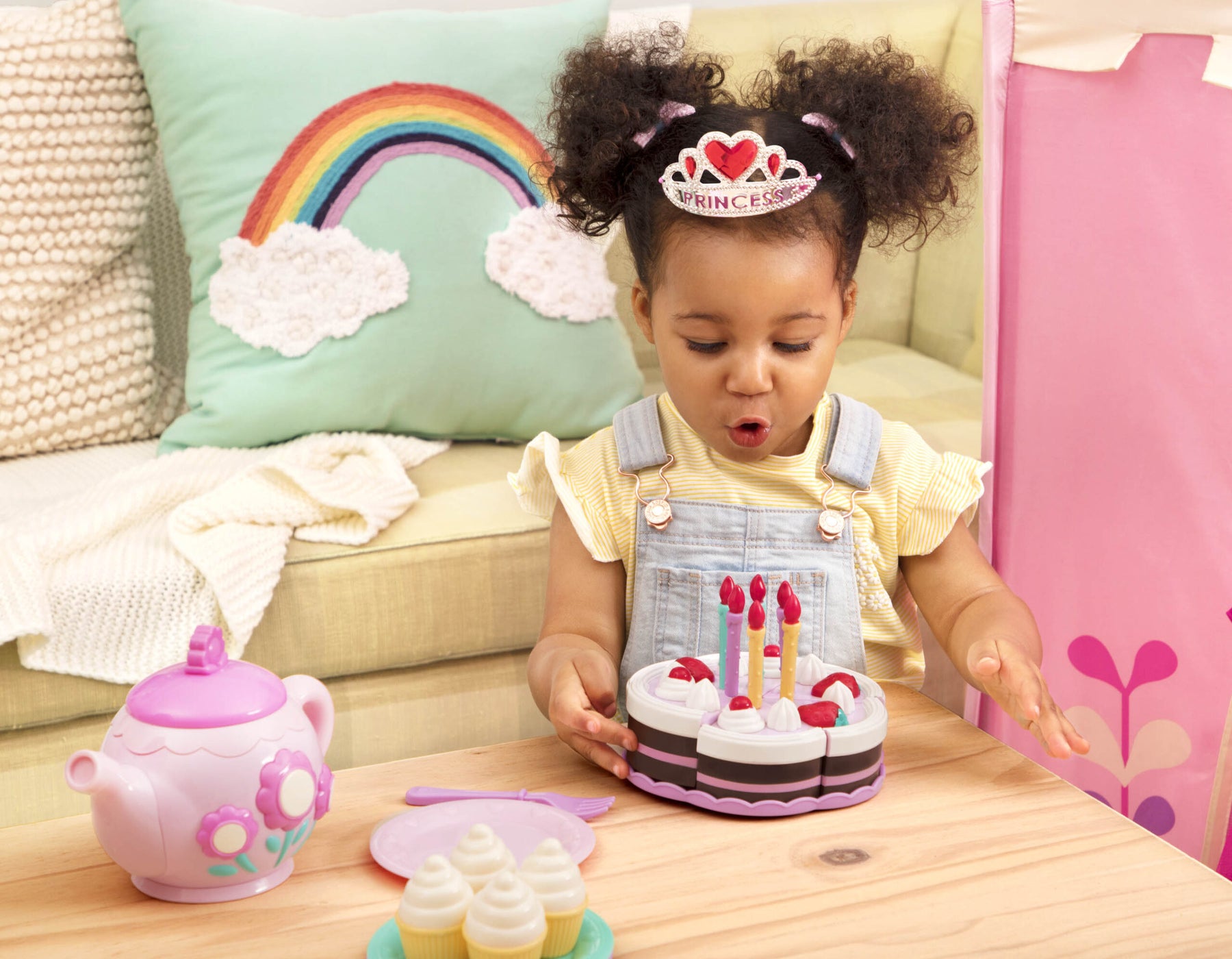 The Play Circle Princess Birthday Party set from Battat is a 24-piece birthday cake set for kids that turns any day of the year into a celebration! This colorful cake set comes with all the essentials for hosting a birthday party. With 4 place settings and 6 pieces of toy cake, little ones can invite three friends or dolls and plush pals to celebrate. Realistic details like candles, a removable birthday cake topper, cake server, dishes, and utensils will provide hours of excitement. And don’t forget the tiara! This playset is a fantastic gift that comes with different role-playing and learning opportunities at a variety of ages and developmental stages.