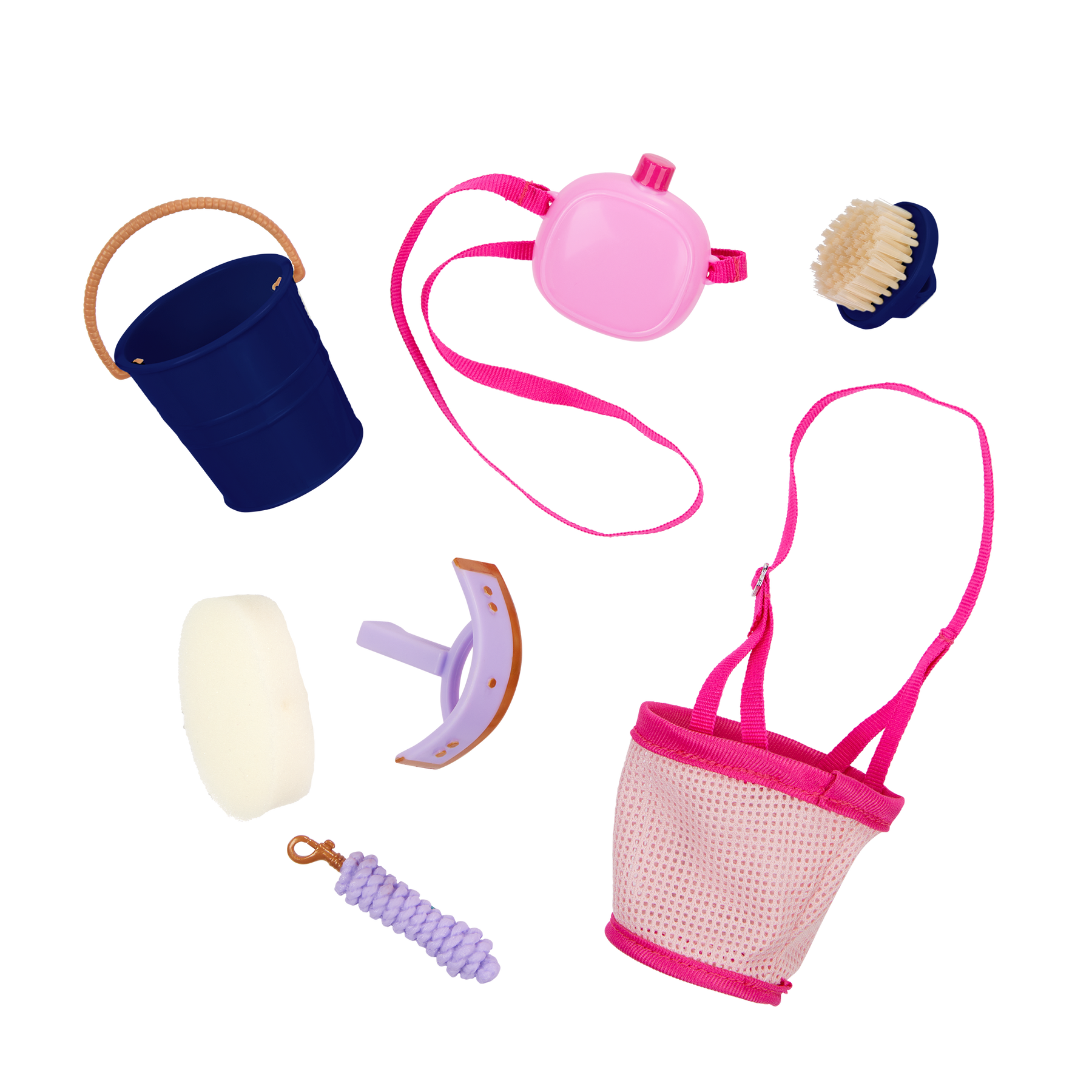 Gallop into adventure with the Our Generation Posable Morgan Horse for 46 cm dolls! Movable legs with bendable knees and hooves inspire realistic horseback riding and fun poses. Plus, its long brown mane and braid-ready tail let kids explore their favourite country styles! Ready to hit the trails? Bridle the horse with the reins, then seat your doll on the comfy saddle to discover acres of imagination. The saddle is designed with mini loops to easily carry the canteen and feed bag along the way, while the grooming brush, rope tether, scraper, bucket, and sponge help little riders keep their horse in tip-top shape. Our Generation toy horses make a great gift for kids ages 3+ (small parts), encouraging them to create their own unique stories. Compatible with most 18-inch dolls, horse toys, and doll accessories. Our Generation dolls sold separately.