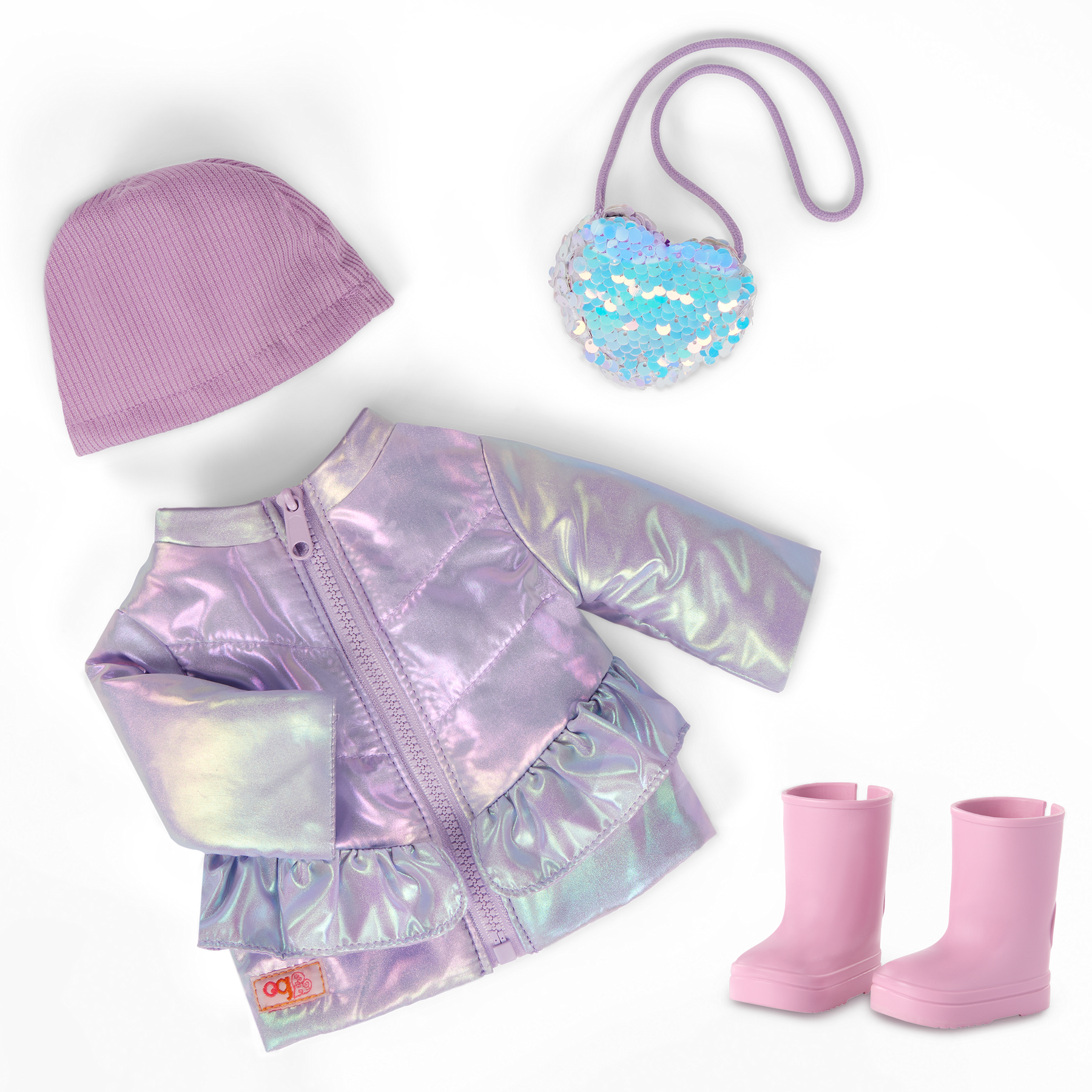 Bundle up in brrr-illiant style with the Our Generation Wintery Glam outfit! This 46 cm doll clothing set includes a metallic puffer coat that kids can really zip up. Plus, the coat has cute ruffle details for extra playful charm. The adorable beanie hat and tall pink boots make dress-up double delightful for fashion lovers as they style their doll from head to toe. And for adventures on the go, they can carry their favorite mini items in the heart-shaped sequin purse! Compatible with most 46 cm dolls, doll clothes, and accessories to mix, match, and set new trends. Our Generation doll clothes are a great gift for kids ages 3+ (small parts), encouraging them to create their own unique stories. Our Generation dolls sold separately.