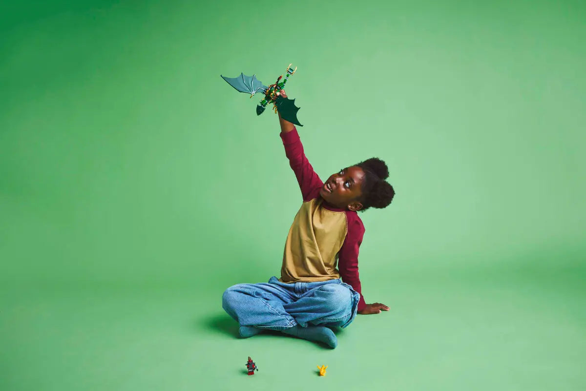 - Posable NINJAGO® dragon – A buildable model of Lloyd’s Green Forest Dragon with a posable tail, neck, legs, hands and large wings, plus a saddle so a minifigure character can ride on its back
