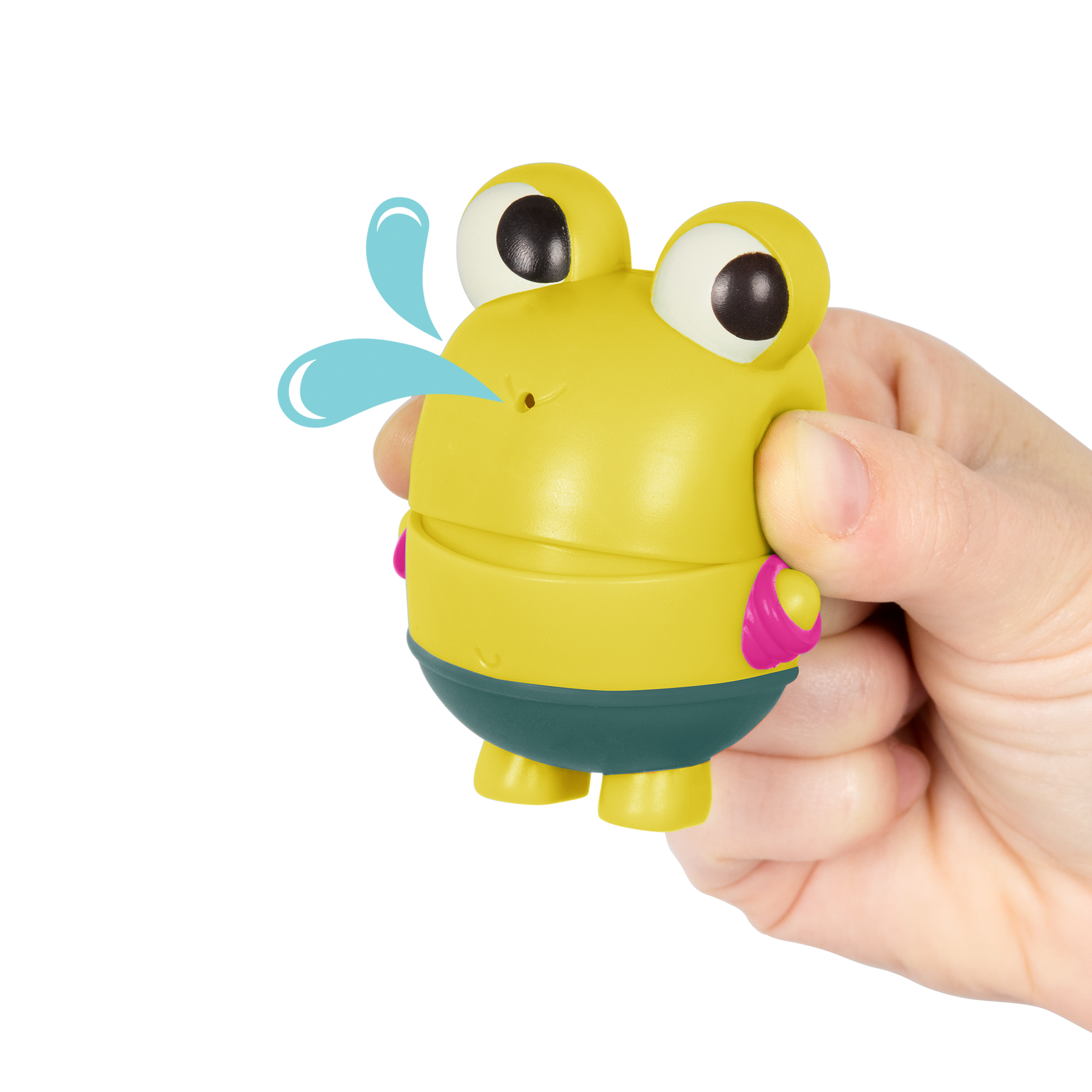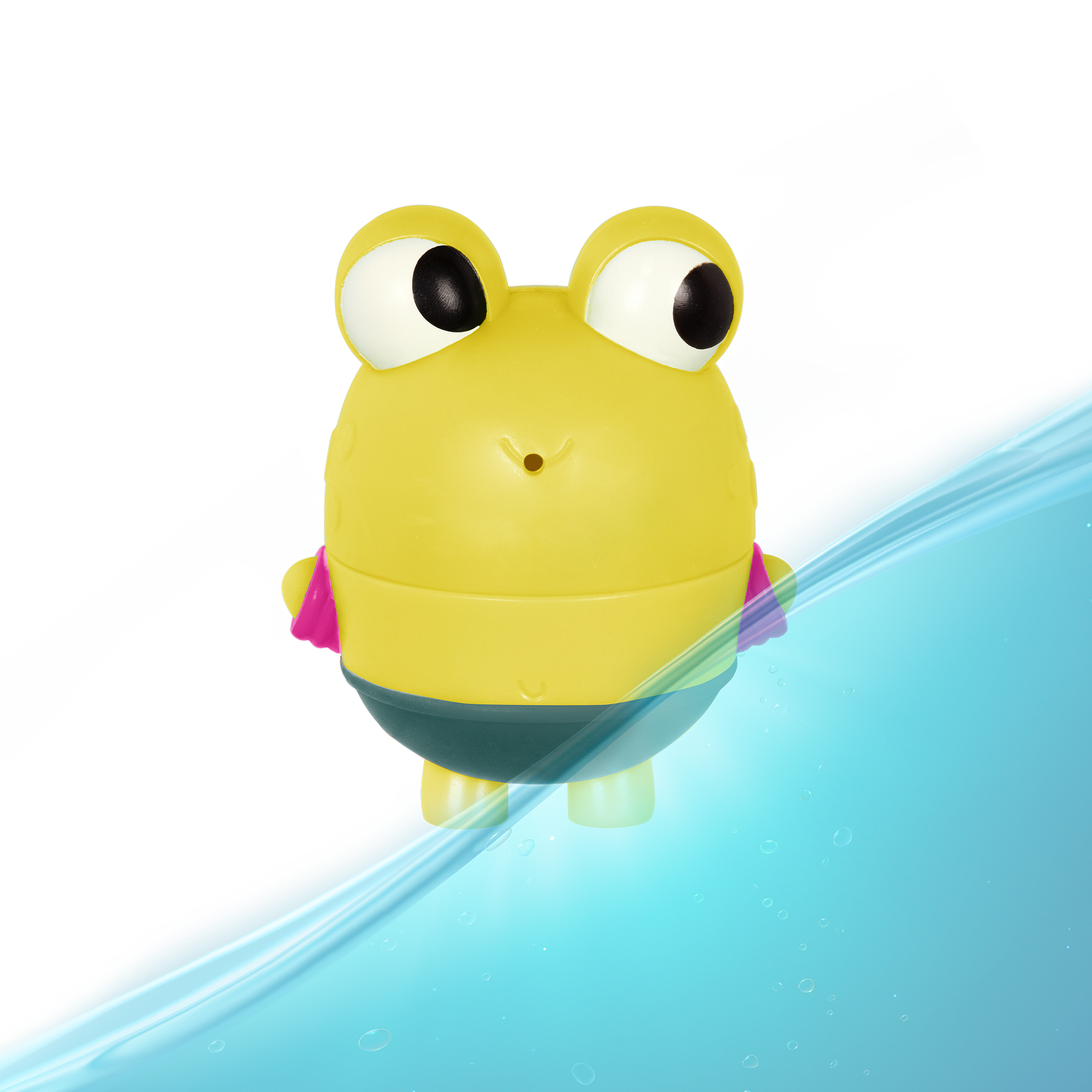 Glow & splash with Jax and a whale for bathtime fun that never fails! Place the wonderful whale into the water and watch as it magically glows and projects stars all over the room. It’s a tub-time disco! And If you want to play with each bath toy separately, you can easily pop Jax out of the whale and fill this little swimmer up with water to ensure the splashiest experience. When the water is warm, this frog’s swimsuit color changes right before your eyes! Playing with the Glow & Splash set develops fine motor skills and improves sensory development. 1 AAA battery is required and included (non-replaceable).