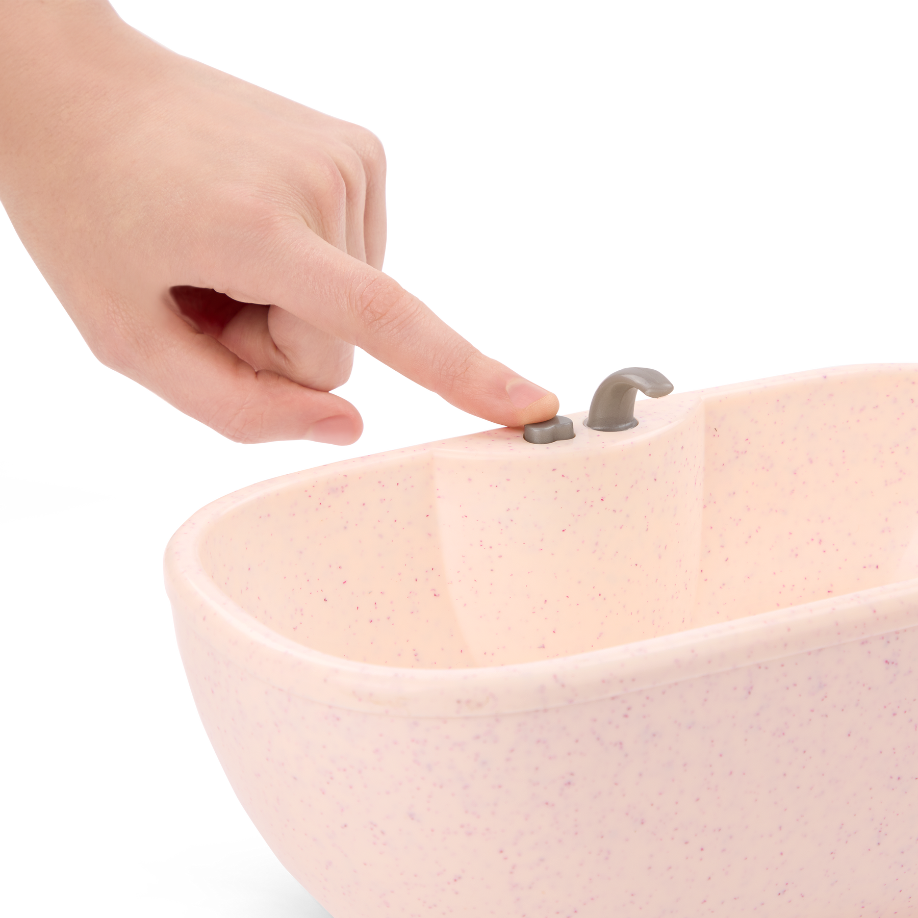 Splish, splash, and give baby a bath with the Our Generation Baby Lacy & Bathtime Set! This adorable playset gives kids everything they need to care for baby doll Lacy. Ready for bathtime? Push the button on the bathtub to hear running water to "fill up" the tub. Once Lacy is in the tub, add the toy bubbles and bath ducky for extra fun. Then, push the button again to activate a "splashing around" sound to enjoy realistic role-play! A potty and potty chart help teach kids basic hygiene habits, from learning to flush to washing their hands. Plus, the added sticker sheet lets kids proudly mark each accomplishment! Themed accessories like the hooded towel, washcloth, diaper cream, shampoo, soap, baby wipe, and diapers complete the set and add to the storytelling. Makes a stylish addition to dollhouses and doll furniture sets. Perfect gift for kids ages 3 years old and up (small parts), encouraging them to create stories and scenarios that involve caring for others.