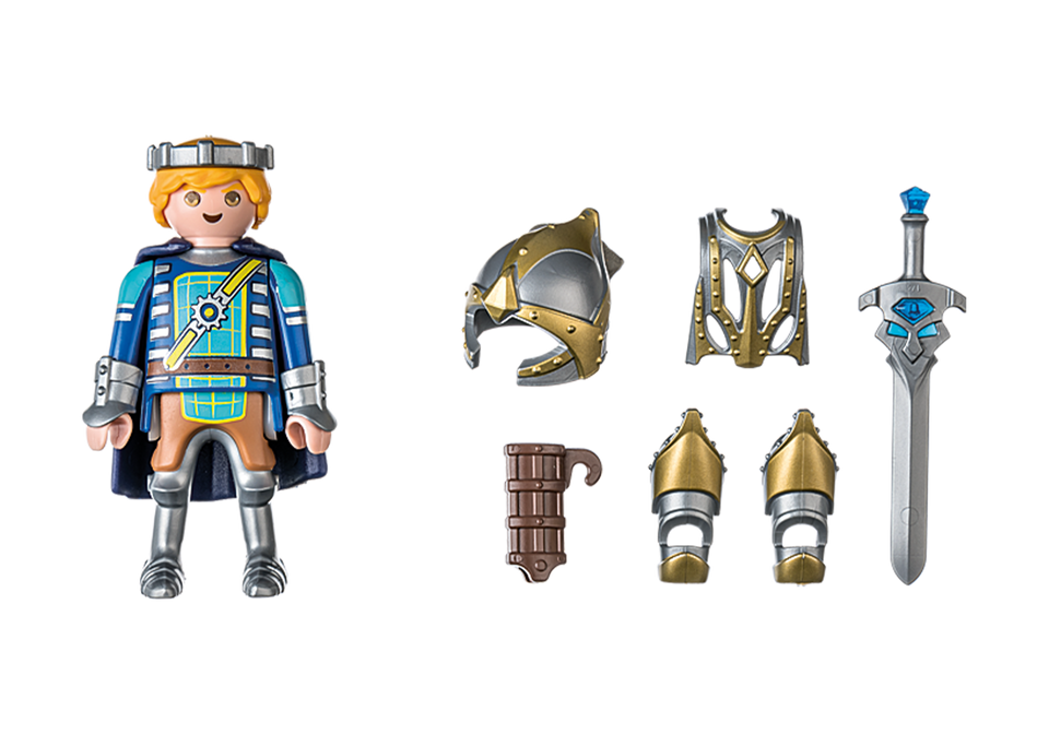 Prince Arwynn is always ready for the next adventure. Whether it's against the fearsome Burnham Raiders or into the desert of Sal'ahari Sands, Arwynn faces every challenge with courage and determination, and with his friends Gwynn and Dario. In addition to his sword and cape, Arwynn has at his disposal the magical armor Invincibus. When he puts it on, he becomes invincible and puts any enemy to flight with ease. A perfect souvenir or gift for knight fans aged 4 and up.
