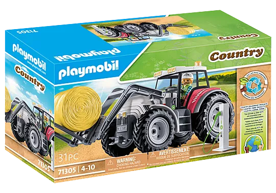 The cool large tractor from PLAYMOBIL has everything nature-loving children need to support the farmer's family in the field work. With the modern tractor, the heavy hay bales can be lifted and transported effortlessly, and thanks to the electric drive, it's also environmentally friendly. After work, the e-charging station can be used to "refuel" the vehicle. Makes a great birthday, holiday or any-day treat for creative kids who love agriculture. The large organic