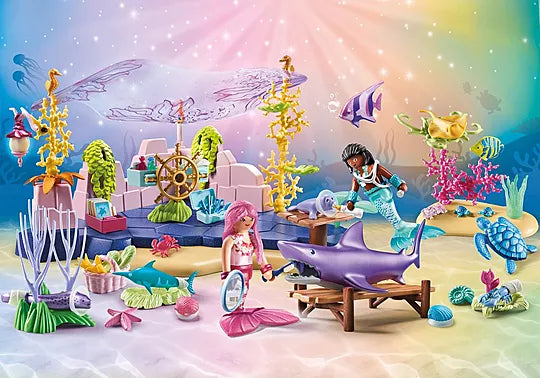 Dive into an enchanting underwater world with the PLAYMOBIL Mermaid Animal Care set. This magical playset lets kids explore Princess Magic’s underwater kingdom, where mermaids care for adorable sea creatures. From bandaging wounds to cleaning shark teeth, every sea animal gets the help it needs. With vibrant water plants and various sea animals, this set sparks imaginative play for children aged 4 and up.