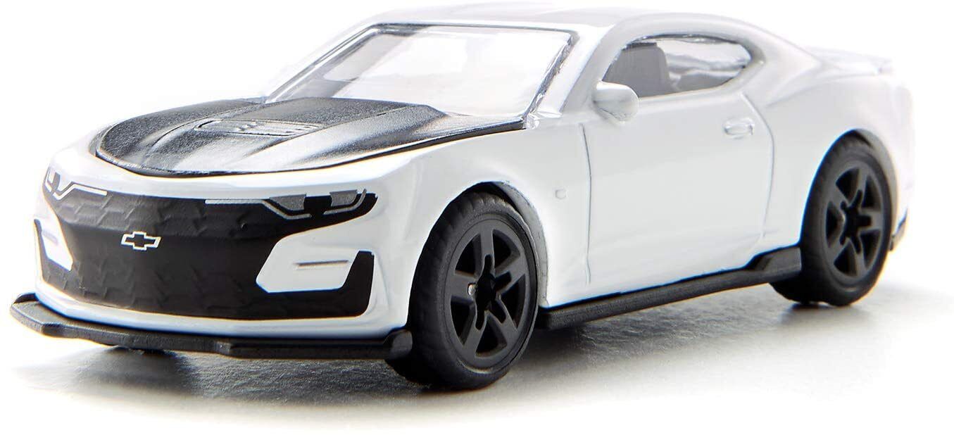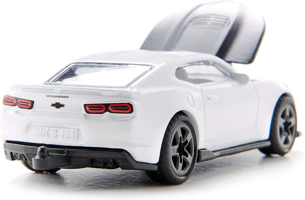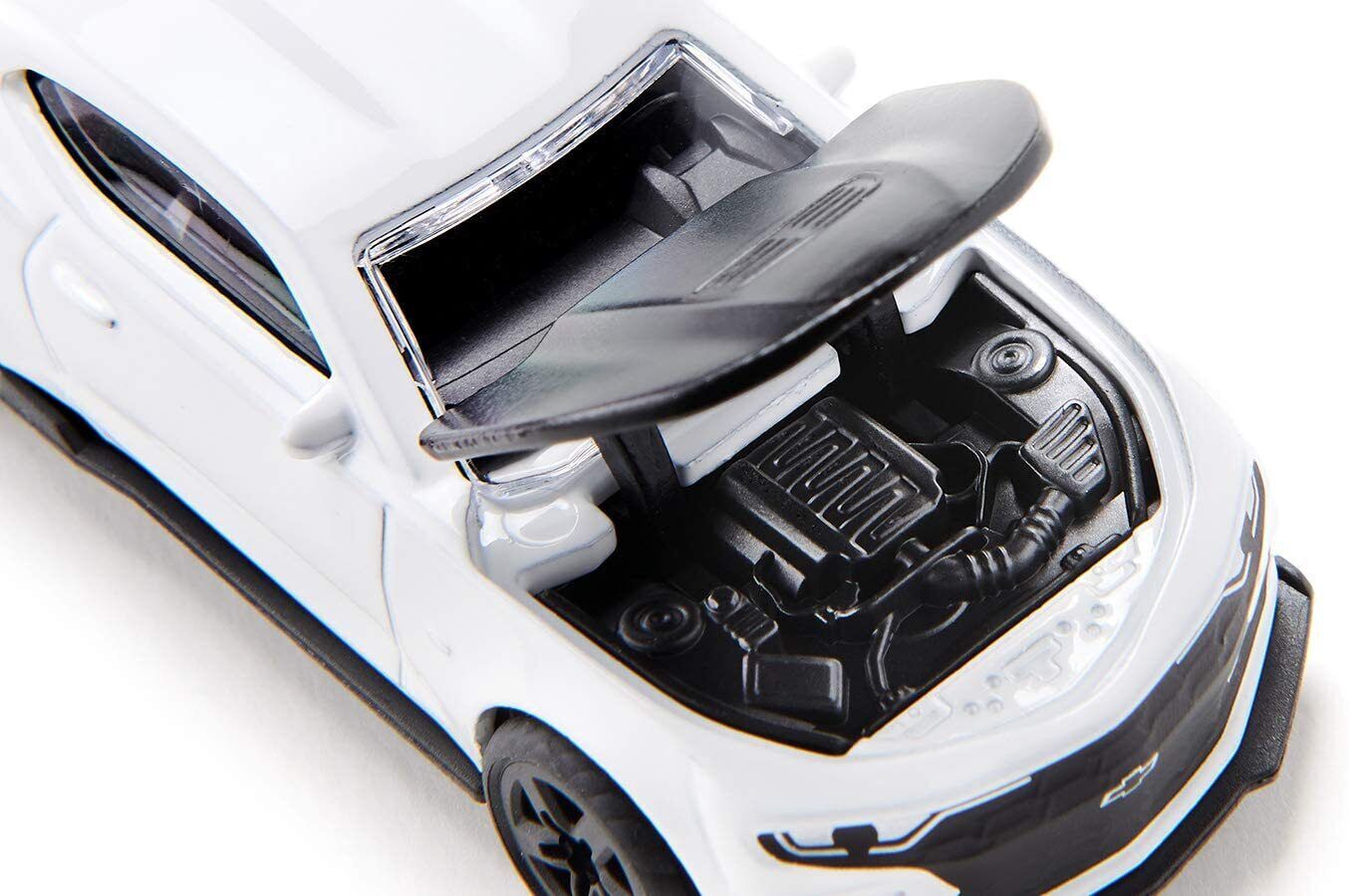 Muscle car with V8 power - The sixth generation of the Chevrolet Camaro carries the genes of a typical muscle car too. Especially when the driver exercises the muscles of the V8 engine. Even when stationary: open the bonnet, and take a look at the highly detailed engine. This places the Camaro with the other muscle cars in the Siku range: Dodge Challenger, Chevrolet Corvette, Ford Mustang. Of course, the latest generation is even faster and easier to handle than its predecessors, and has excellent grip, thanks to its rubberised tyres. But the Chevrolet Camaro has other capabilities too: the trailer coupling makes it a cool tractor for a boat or motor bike trailer.