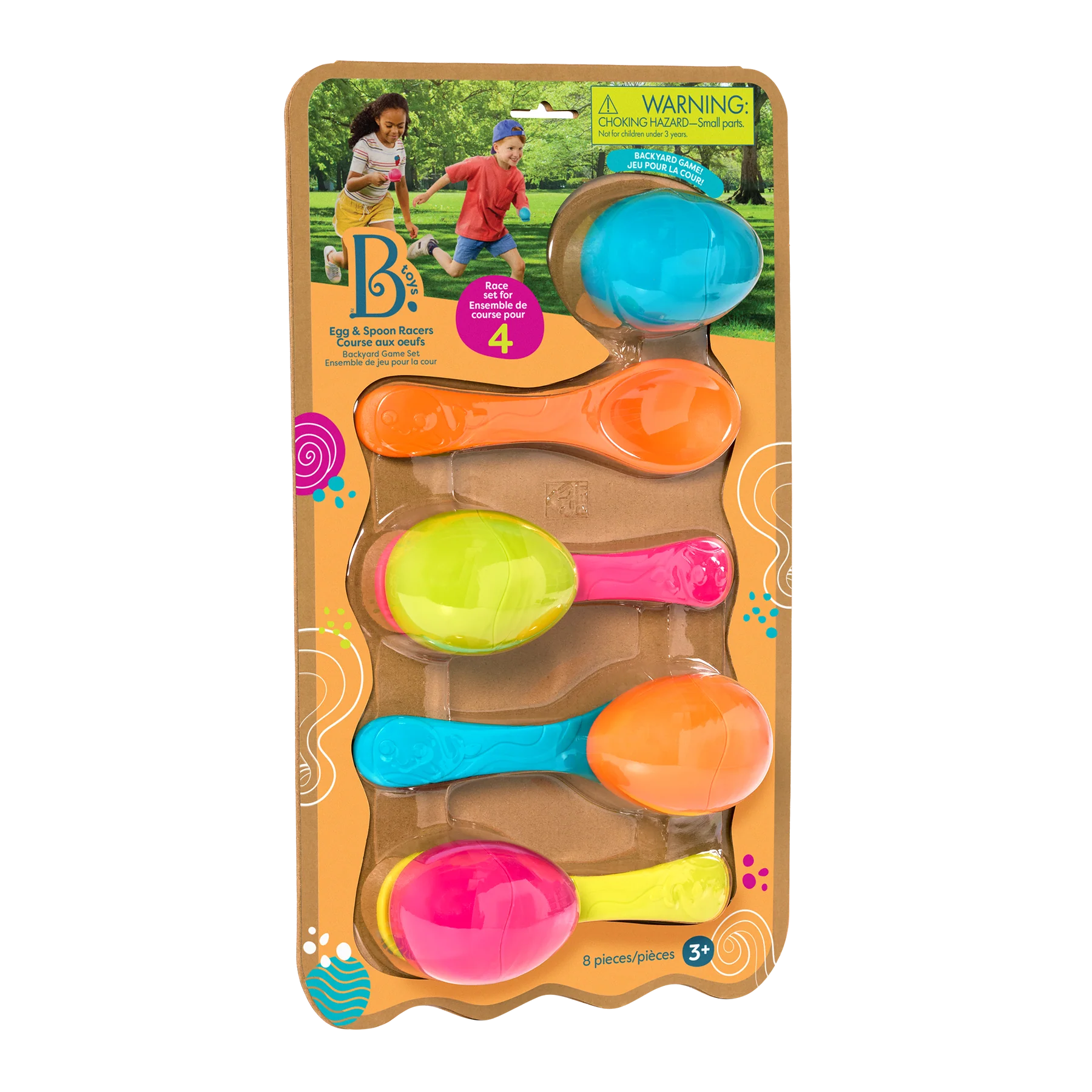 Keep it steady with the Egg-an-Spoon Racers set from B. toys! This classic game comes with 4 colorful spoons and 4 eggs – put the eggs on the spoons, then race without dropping ‘em! Not to mention, the eggs feature a fun twist: all of them open at the middle! Add fillers to make balancing more challenging, or just stuff with surprises to enjoy at the finish line. This outdoor game is sure to add a splash of colorful fun to any backyard BBQ or birthday party, and it'll keep kids active as they play.