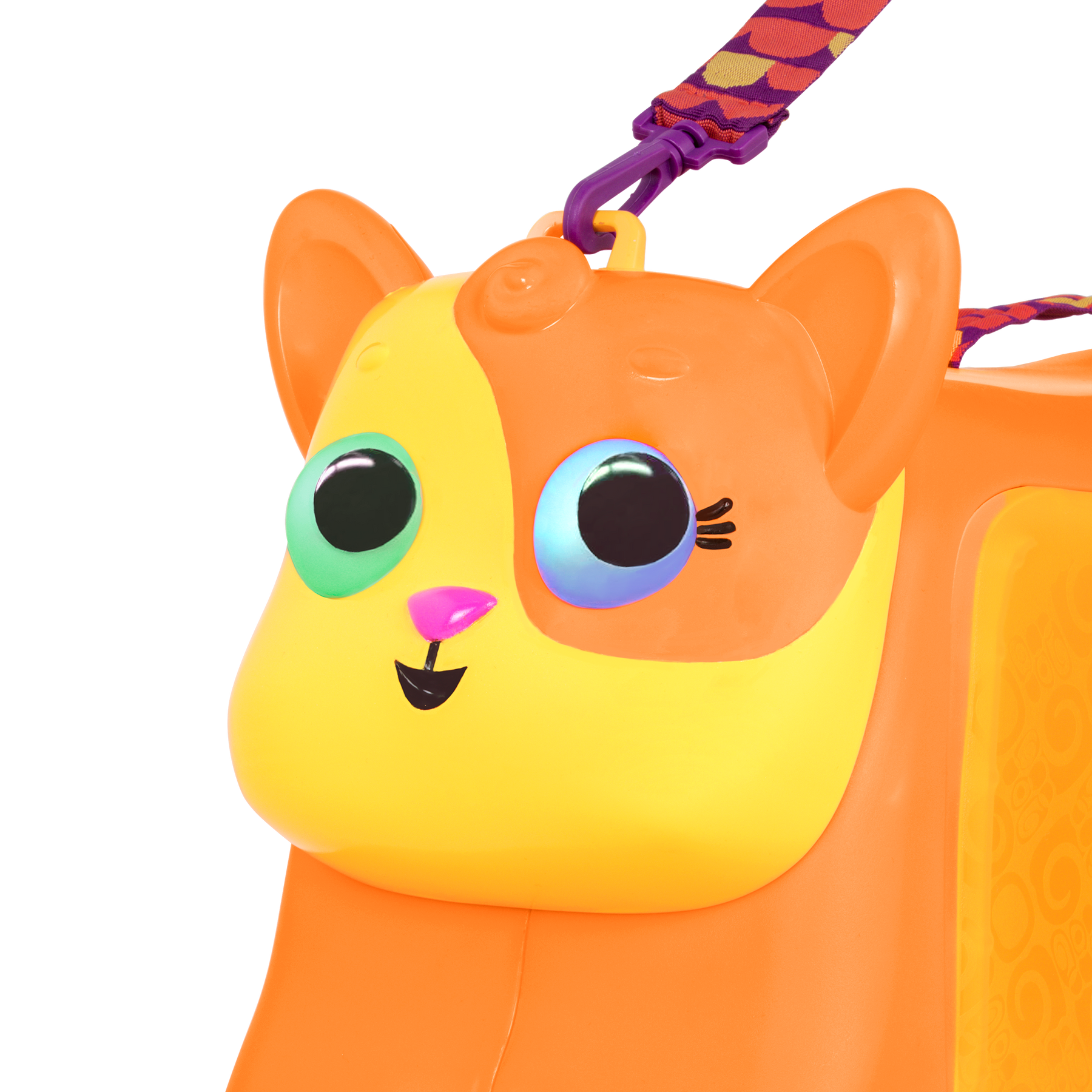 Bring your lil' treasures everywhere with the Gogo Ride-On – Lolo from B. toys! Whether you’re staying over at a friend’s house or boarding a plane, this ride-on toy can easily double as a little suitcase. This kids' luggage has enough storage space to hold a child’s precious belongings and includes handy interior elastic straps that help those belongings stay put. This cat ride-on is also equipped with a detachable carry strap and a little fish handle, making it easy for little ones to tow along. And the fish doubles as the key that locks it up and keeps everything safely stored inside. Designed with fun in mind, this ride-on comes alive with multicolored, luminous eyes and sound effects! 3 AAA batteries are required and included.