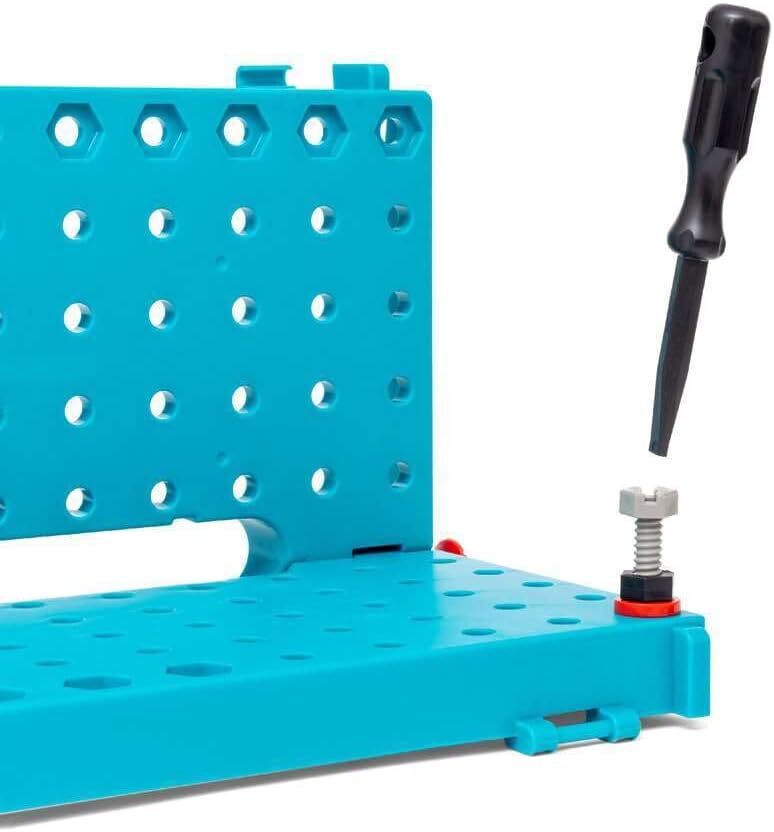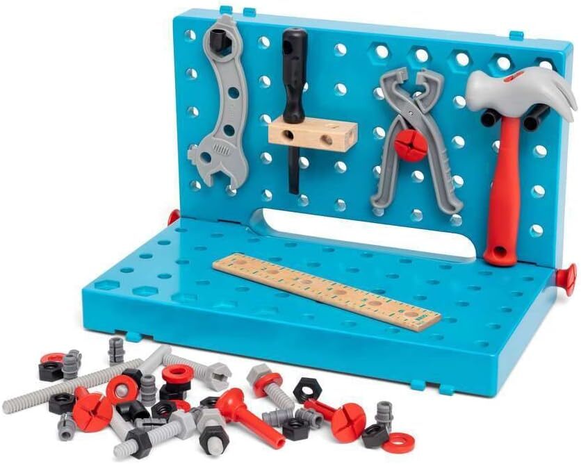 Hammer, screw, twist and tighten with the Work Bench from BRIO Builder. This construction toy is a great introduction for children looking to get to grips with construction play. The flexible design of this working bench means children can practice using tools like hammers, wrenches, screwdrivers and more in a creative and open-ended way. And once you're done playing, simply fold down the bench and convert it into a handy toolbox for smart storage.